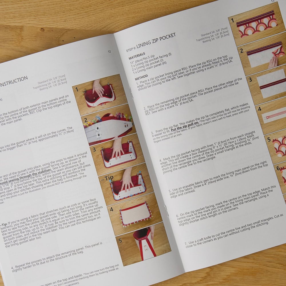 I love the way this bag looks in waxed canvas, and more experienced sewists may want to give cork or vinyl a try. If this is your first bag, or you’re using a domestic sewing machine, cotton may be a better option. Whatever fabrics you decide to use, make sure they’re suitable for your sewing machine. For domestic machines, cotton is usually the easiest fabric to work with.